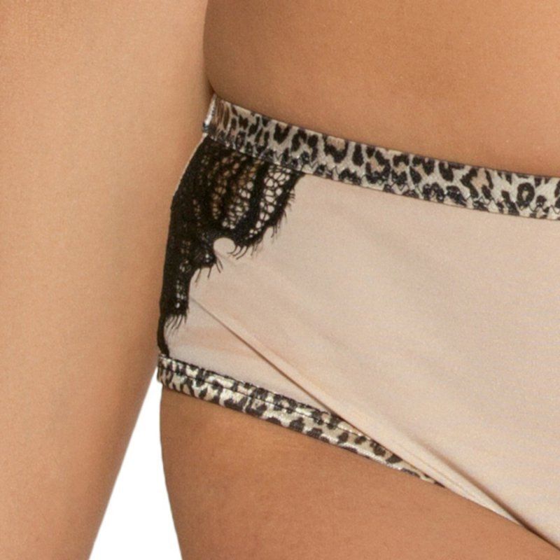 Трусики-бразилиана с леопардовой отделкой и кружевом подходят для повседневного ношения, а также для особых случаев. Они идеально сочетаются с бюстгальтером из той же коллекции, создавая гармоничный и стильный образ. Благодаря своему дизайну, они подходят для женщин любого возраста, которые ценят комфорт и стиль.