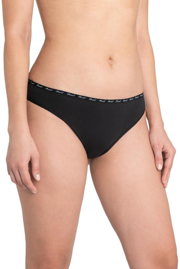 Классическая форма бразилианы с заниженной посадкой создает гладкий силуэт под облегающей одеждой. Эластичный материал мягко облегает тело, не оставляя следов на коже. Черный цвет — базовый вариант для повседневной носки и особых случаев.