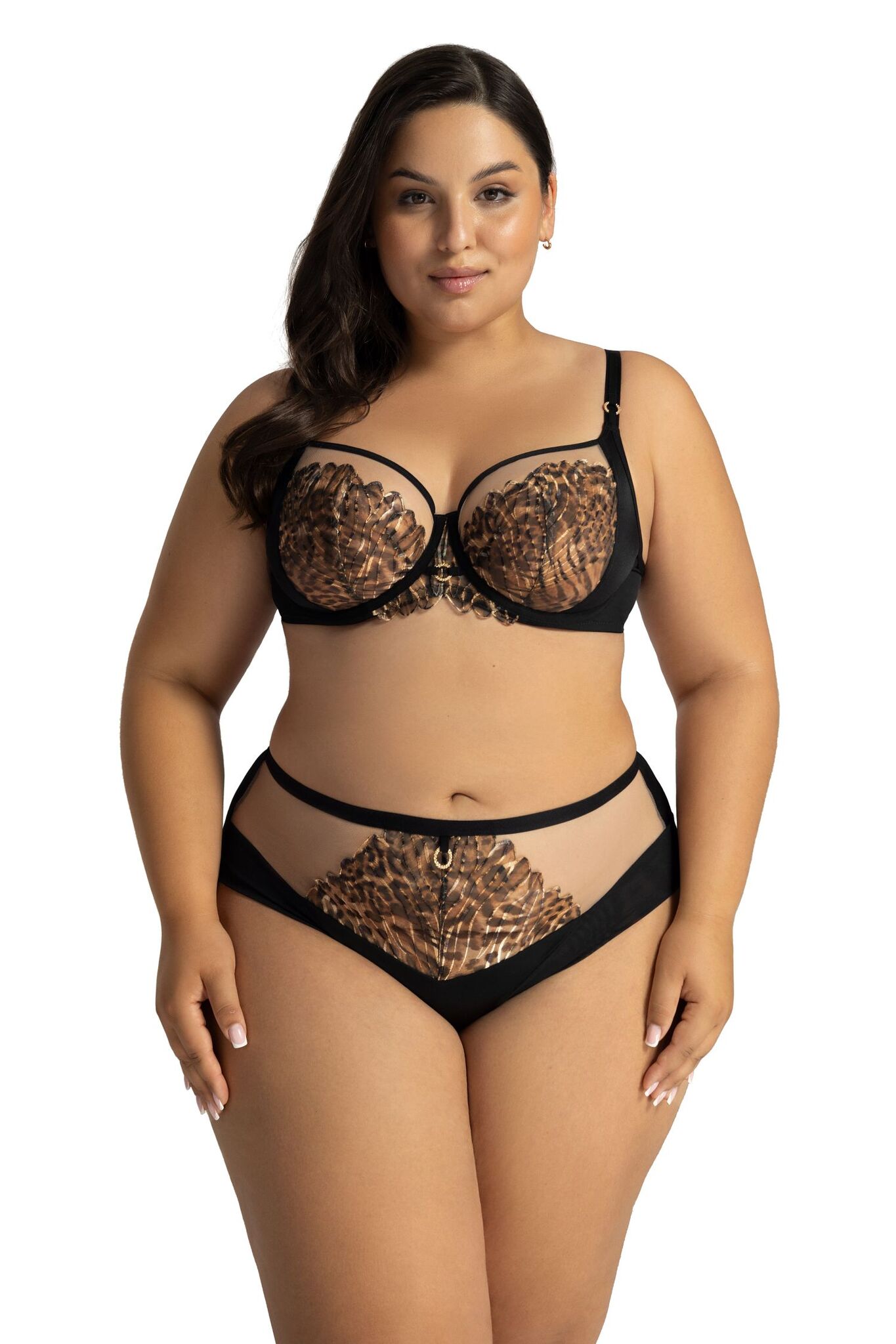 Трусики-бразилиана 'Liana' сочетают дерзкий дизайн с продуманной эргономикой. Модель с контрастным леопардовым принтом и золотистой вышивкой создает соблазнительный образ, сохраняя удобство повседневной носки.