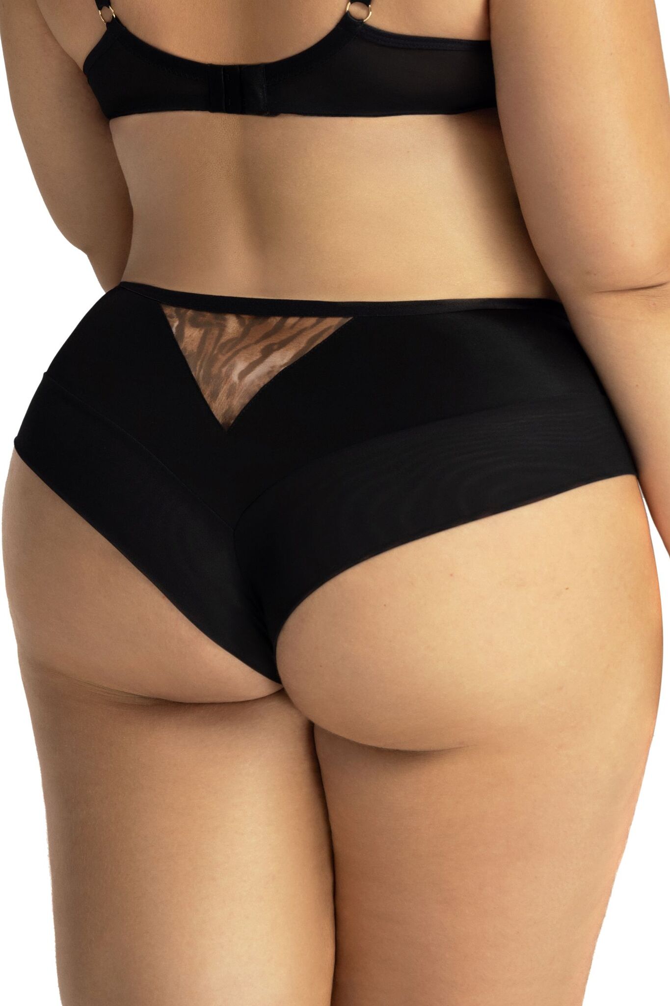 Трусики-бразилиана «Liana» с хищным принтом, черные, XL, средняя посадка, сетчатые вставки