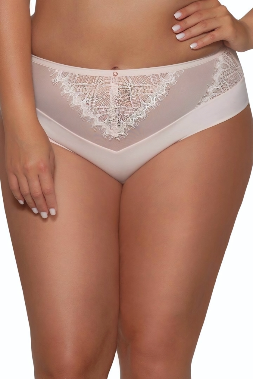 Трусики-бразилиана AVA средняя посадка, пудровый цвет, кружево/сетка, размер XXXL, 91% полиамид, 5% хлопок