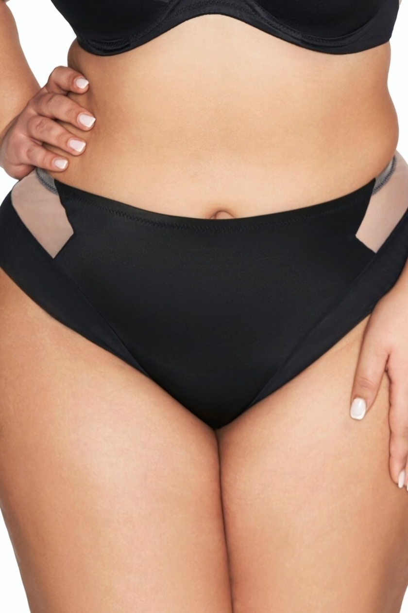 Трусики-бразилиана Viva — это идеальный выбор для тех, кто ценит комфорт и элегантность в нижнем белье. Изготовленные из высококачественного эластичного трикотажа, они обеспечивают отличную посадку и свободу движений. Черный цвет придает изделию универсальность, а вставки из телесной сетки добавляют нотку изысканности.
