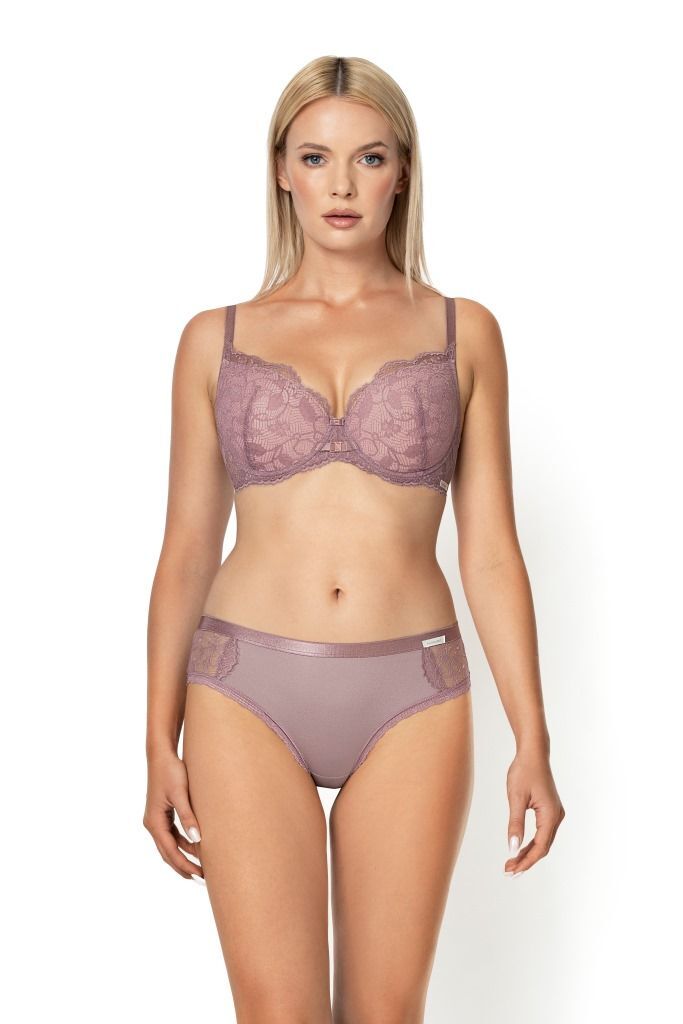 Сиреневый оттенок сочетается с большинством цветов нижнего белья. Кружевные элементы выполнены из гипоаллергенного текстиля с повышенной устойчивостью к истиранию. Товар сертифицирован, соответствует стандартам качества текстильных изделий ЕАЭС.