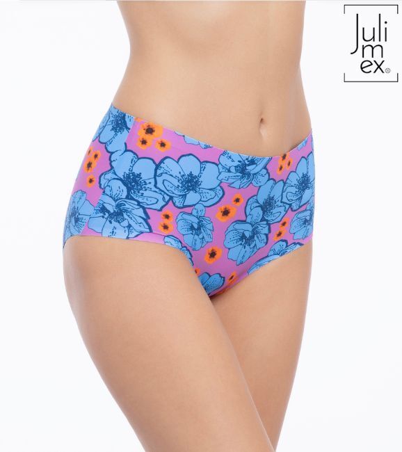 Яркий цветочный принт в розово-синей гамме с акцентами фуксии создаёт модный акцент. Универсальный дизайн подходит для повседневной носки и специального белья под обтягивающую одежду.