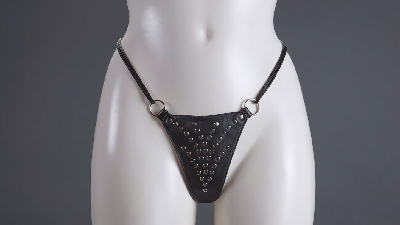Трусики женские кожаные на шнурках, черные с серебром, размер 42-46, регулируемые ремешки