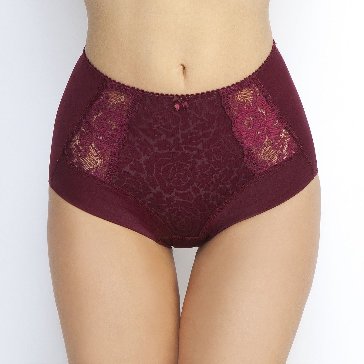 Трусики-макси с кружевными вставками, высокая посадка, моделирующий эффект, размер 46, бордовый