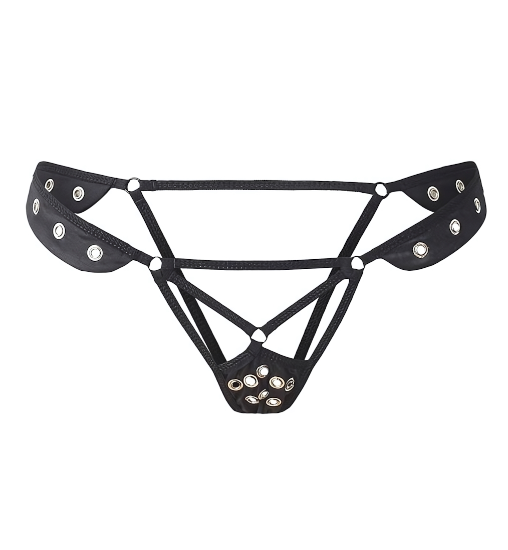 Эффектные трусики с открытой ластовицей созданы для уверенных образов и ярких эмоций. Модель подчеркивает изгибы тела, добавляя образу дерзости и притягательности. Черный цвет и металлические люверсы формируют выразительный контраст, который привлекает внимание и делает силуэт визуально более графичным.