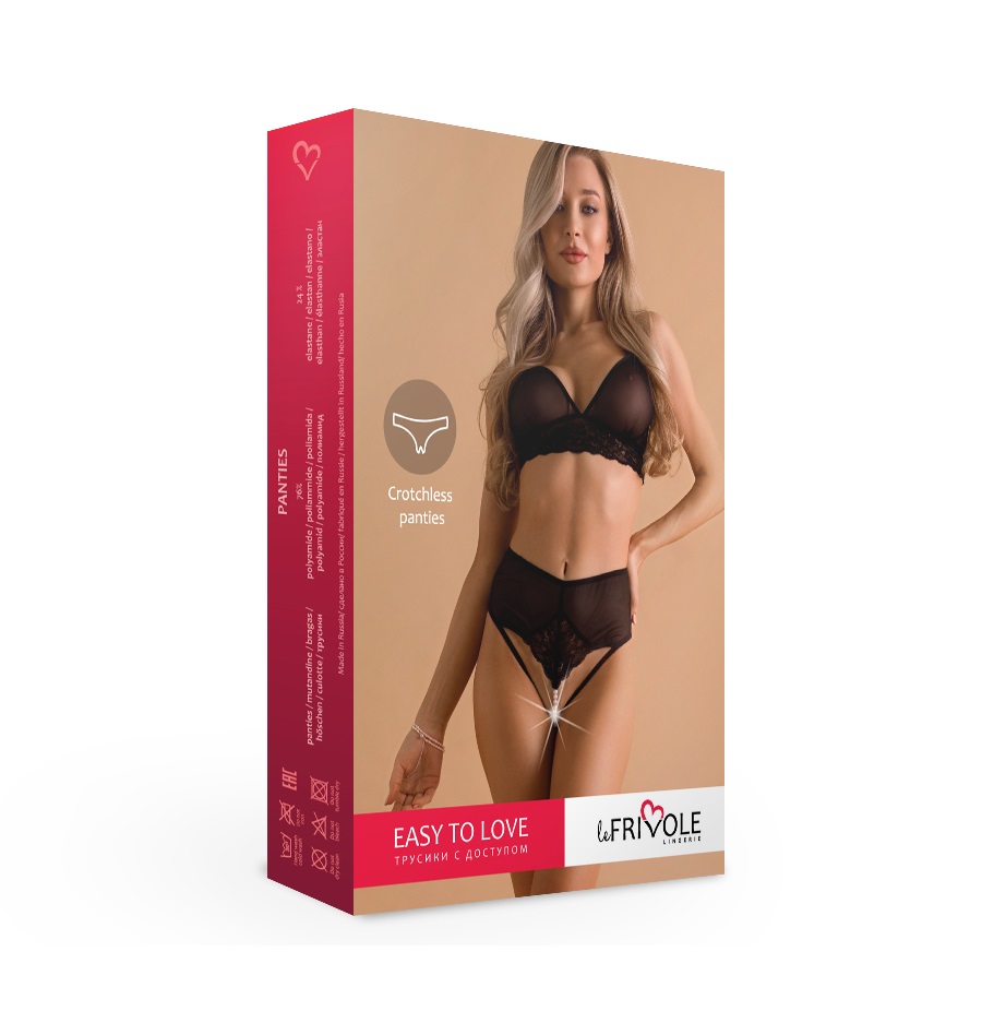 Трусики с доступом жемчугом и кружевными вставками Le Frivole черные (50-52)