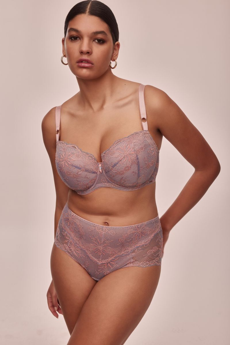 Трусики с высокой талией 'Madera', размер 42, розовый/серый, кружево