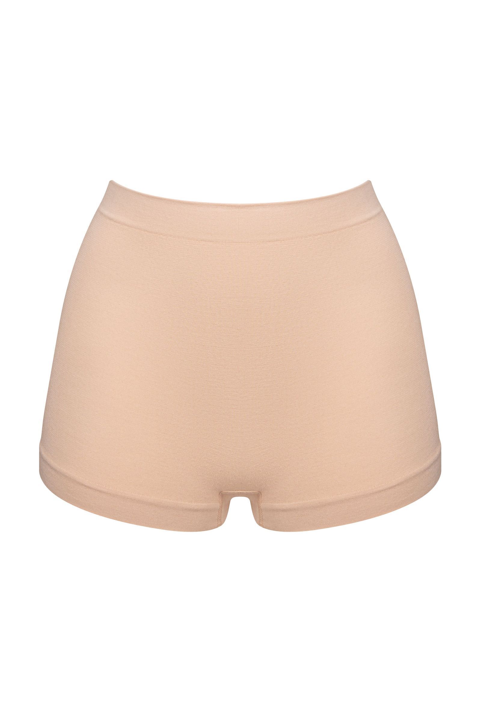 Бамбуковое волокно обеспечивает ощущение свежести и гигиеничности. Материал дышащий, гипоаллергенный и приятный на ощупь. Шорты скрывают зоны бедер и ягодиц, создавая безупречный силуэт под облегающей одеждой.