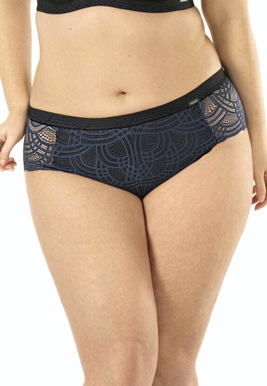 Трусики-шорты Nipplex размер L, темно-синие, кружево/сетка, эластичная резинка, хлопковая ластовица