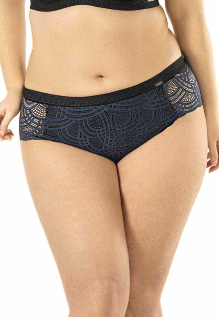 Трусики-шорты «Debora» с кружевом и сеткой, размер S, темно-синий, хлопковая ластовица