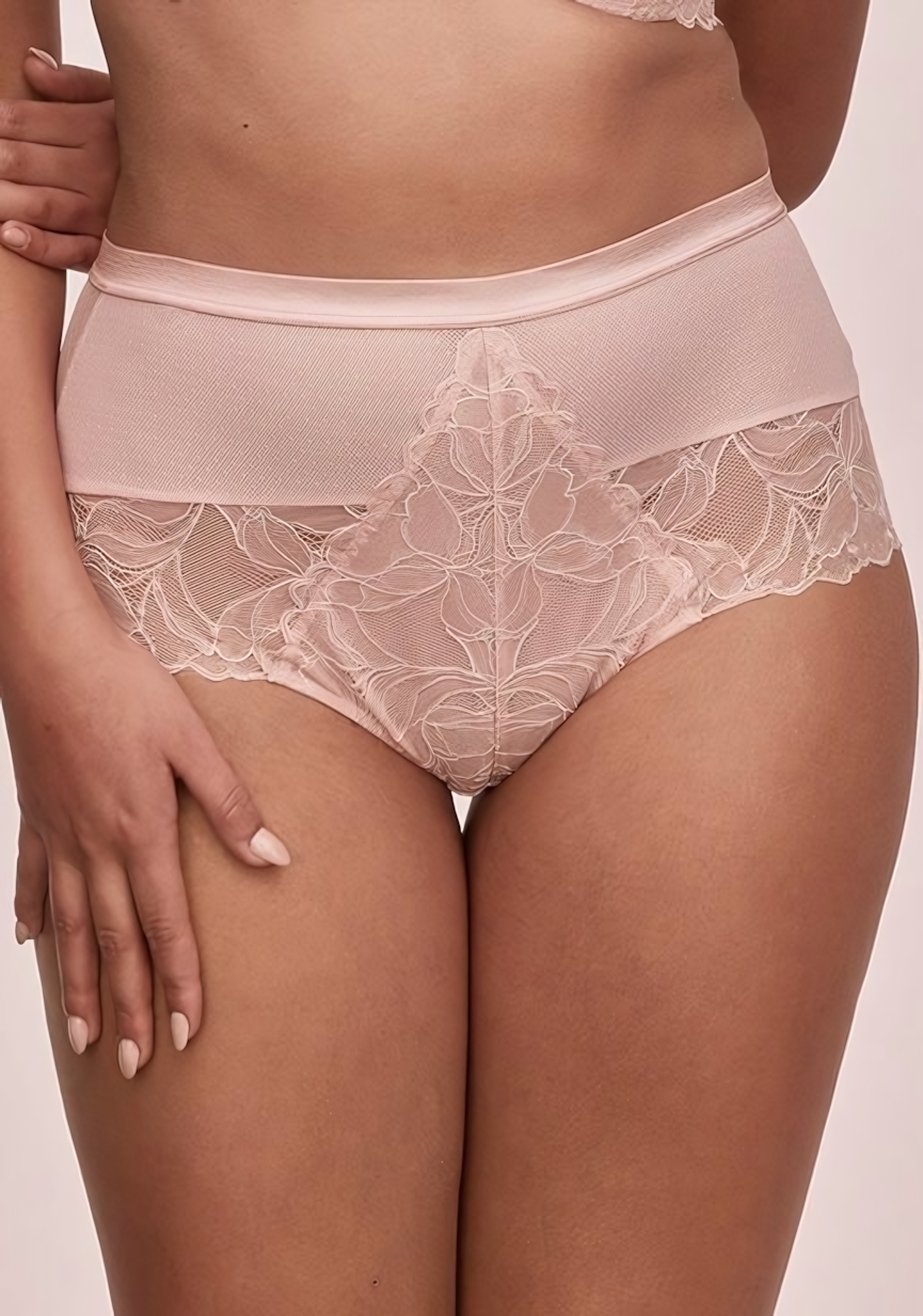 Трусики-слип Glow с высокой талией, размер 40, пудровый, кружево