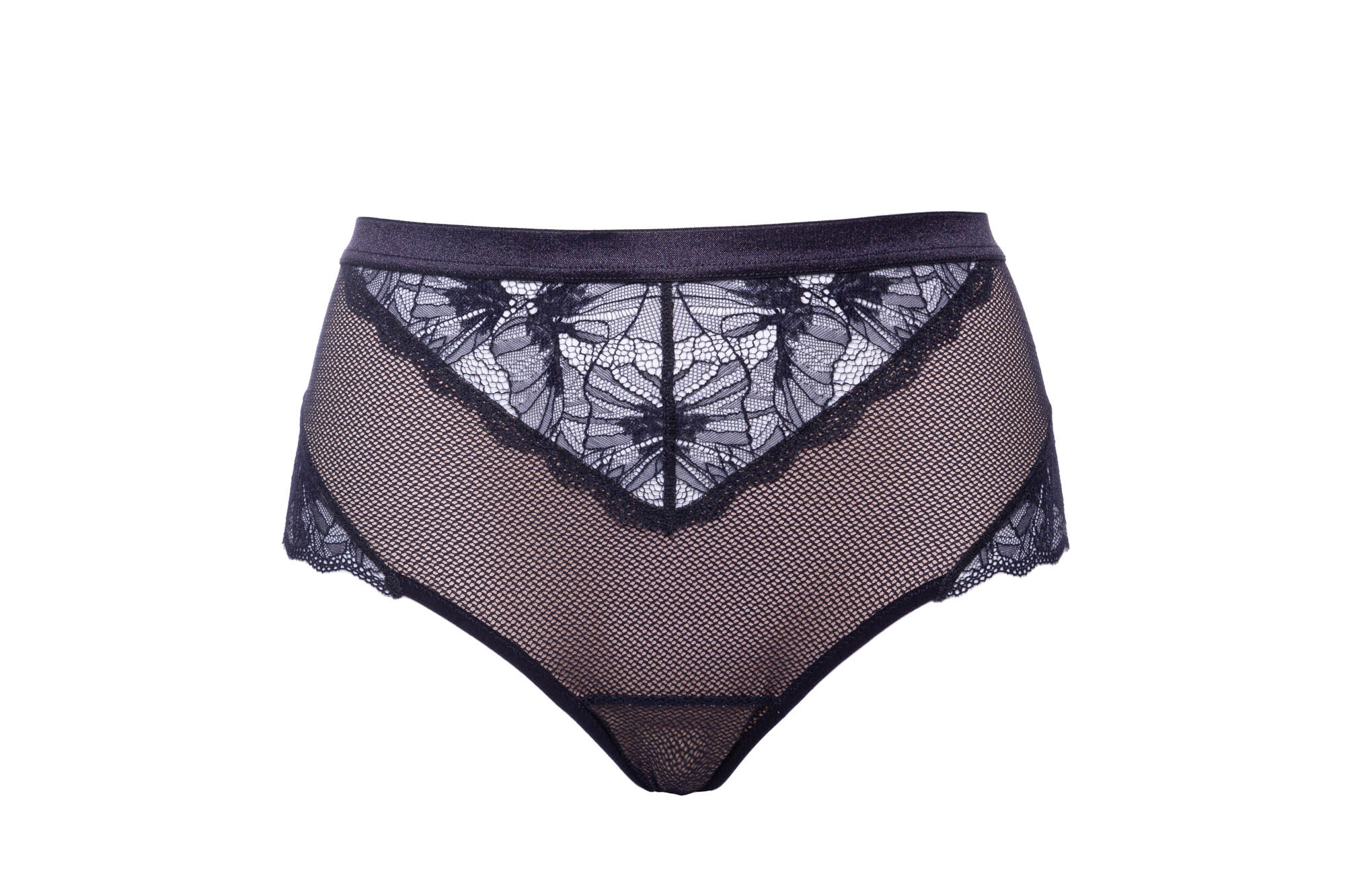 Черные трусики-слип с завышенной линией талии Volare созданы для тех, кто ценит элегантность и удобство. Модель сочетает в себе нежное кружево и практичную сетку, обеспечивая идеальную посадку и комфорт в течение дня.