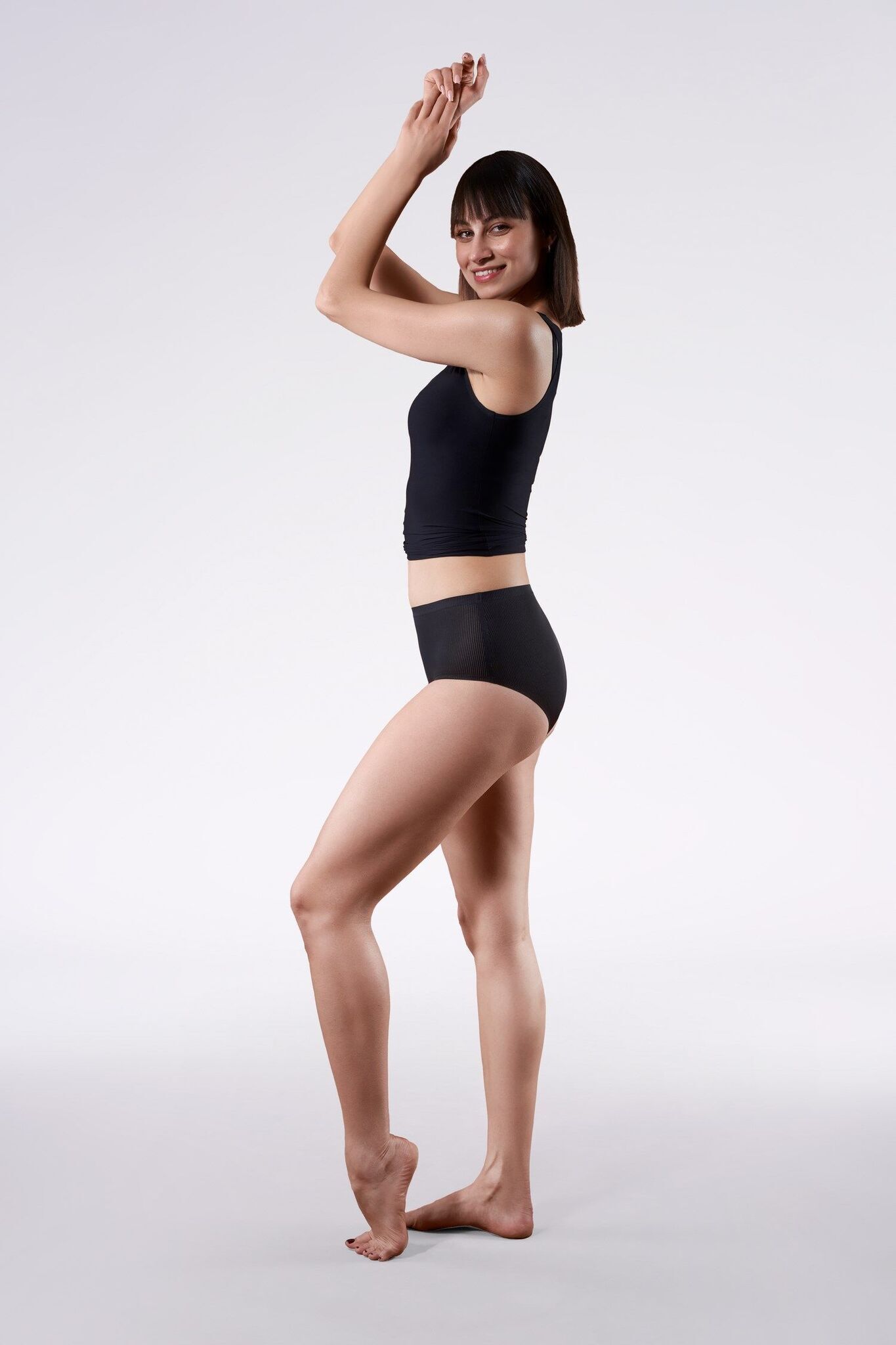 - Высокая линия талии для дополнительного покрытия и поддержки.