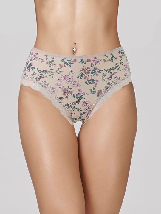 Идеальное сочетание деликатной эстетики и повседневного удобства: бельё из экологичного лиоцелла с цветочным орнаментом и кружевным обрамлением. Мягкая посадка по средней линии талии обеспечивает комфорт в течение всего дня.