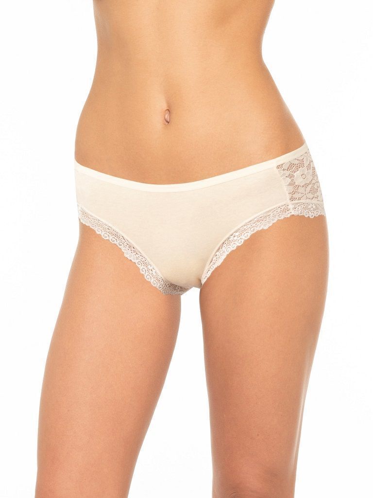 Модель средней посадки с аккуратным поясом не создаёт следов на теле. Цветочный узор кружева и нейтральный бежевый оттенок делают эти трусики универсальными для любого комплекта белья. Благодаря испанскому качеству пошива изделие сохраняет форму даже после многократных стирок.