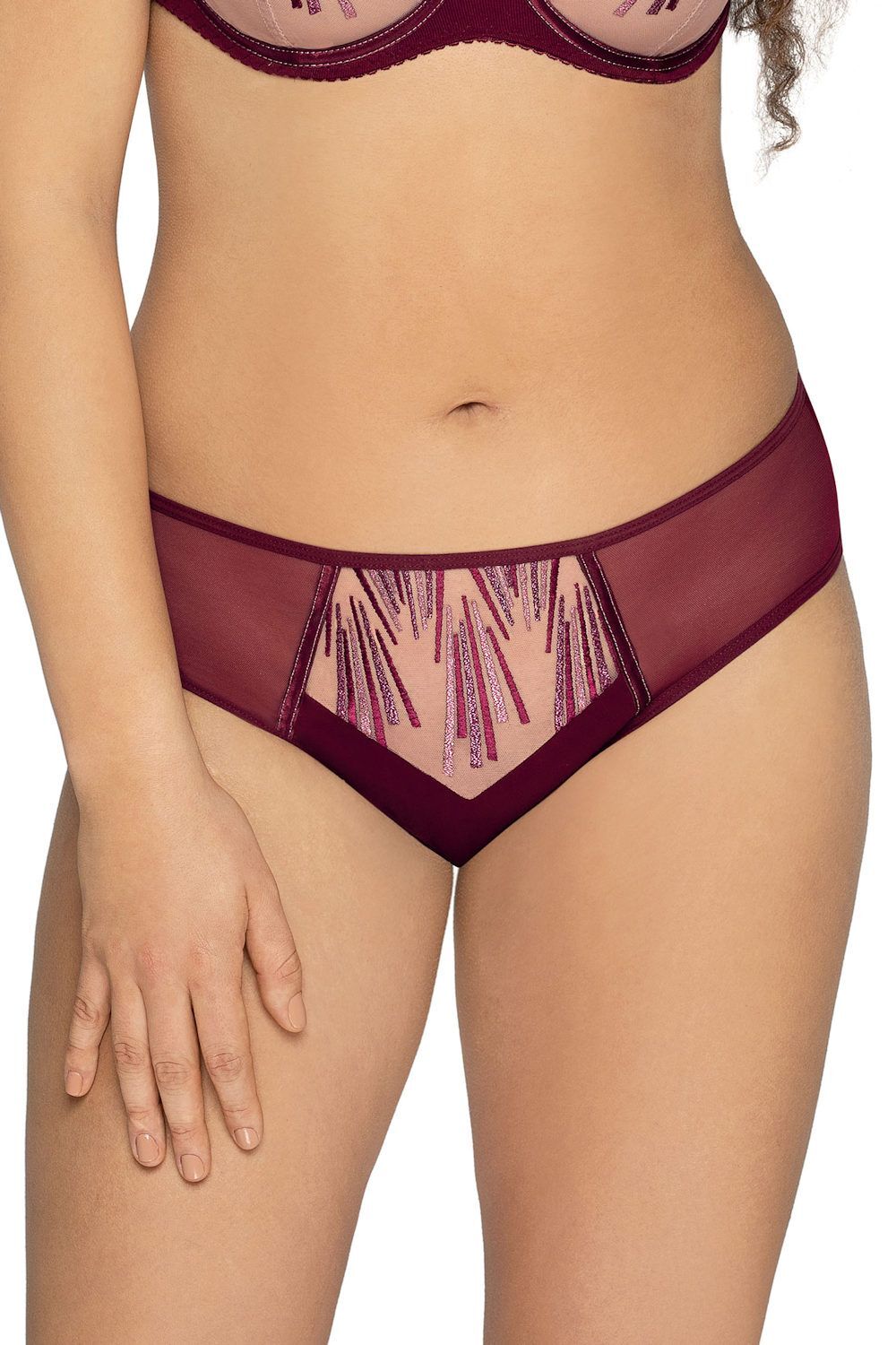 Создайте неповторимый образ с трусиками-слипами, сочетающими в себе комфорт и изысканный дизайн. Бордовый цвет и блестящая вышивка добавят роскоши вашему гардеробу.