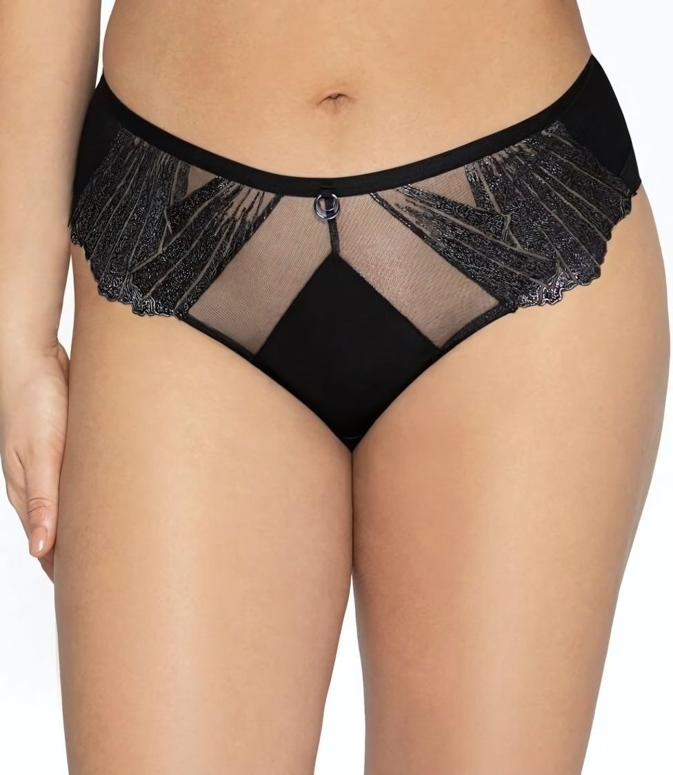 Трусики-слипы AVA черные, XXL, с блестящими элементами и кружевом, полиамид/хлопок/эластан