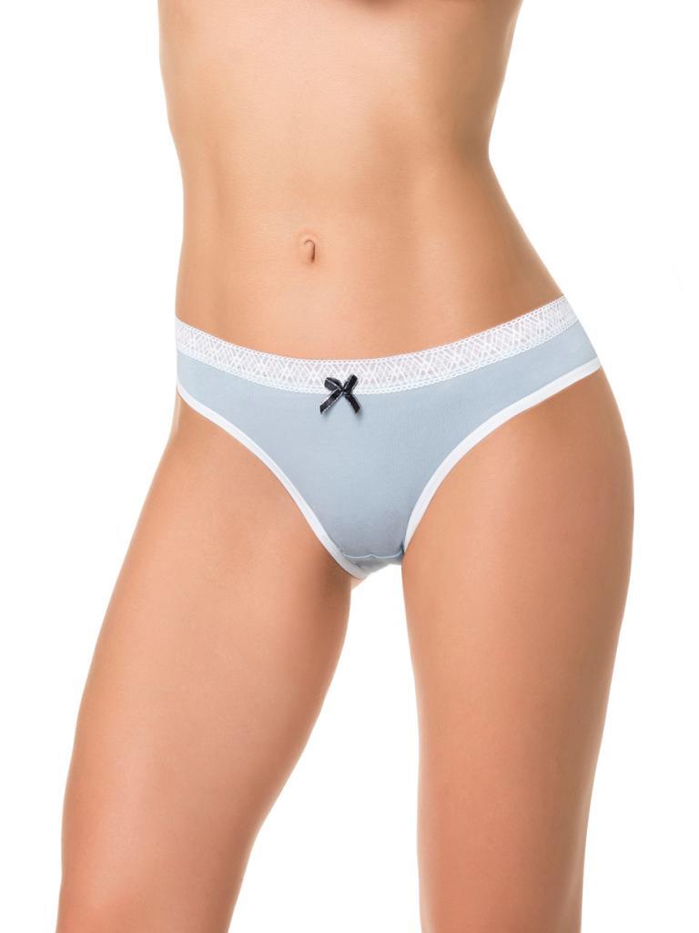 Трусики-слипы с кружевной резинкой и бантиком, голубые, размер M, 95% хлопок