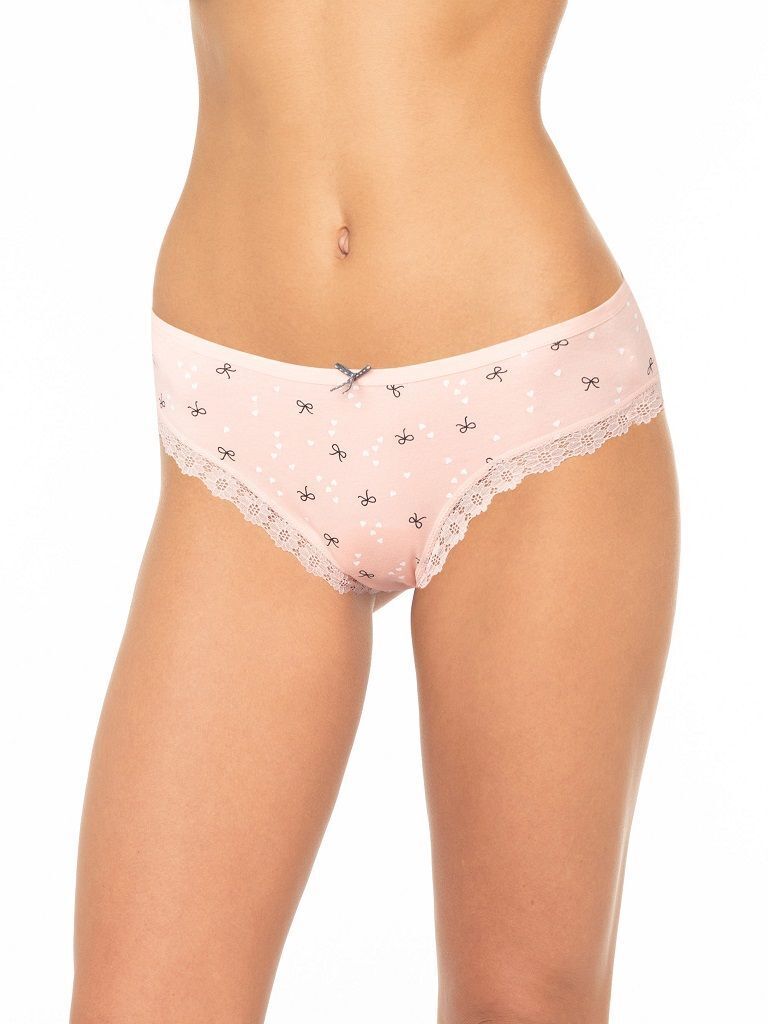 Эти трусики-слипы с кружевной отделкой подарят вам ощущение нежности и уверенности. Изготовленные из высококачественного хлопка с добавлением спандекса, они идеально облегают фигуру, обеспечивая комфорт на весь день. Принт в виде милых бантиков и сердечек добавляет игривости и романтики, делая их отличным выбором для повседневного ношения.