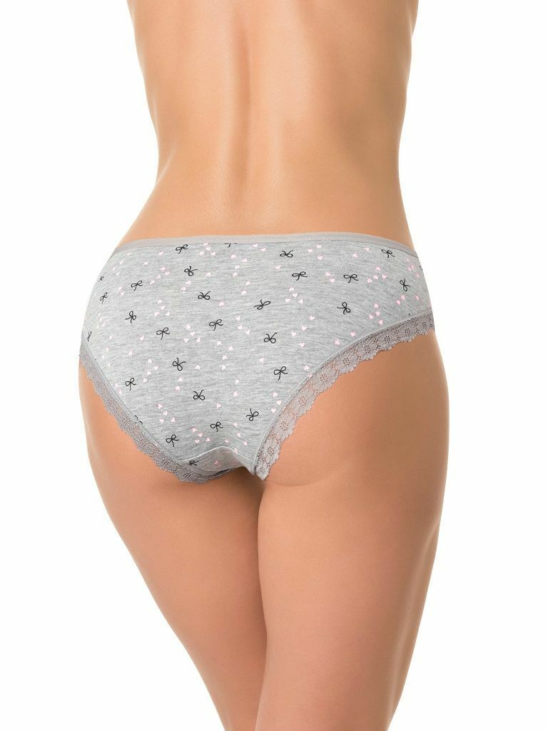 Трусики имеют среднюю линию талии и узкое кружево по краям, что делает их не только красивыми, но и практичными. Они отлично подходят для повседневной носки, а также для особых случаев, когда вы хотите чувствовать себя особенно привлекательно. Принт с бантиками и сердечками добавляет игривости и романтики в ваш образ.