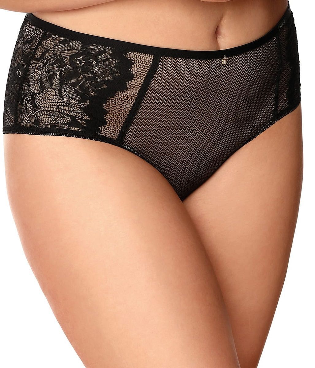 Модель с аккуратными кружевными вставками по бокам подчеркивает женственные изгибы, сохраняя практичность повседневной носки. Универсальный черный цвет легко сочетается с любым комплектом белья.