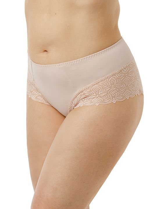 Трусики-слипы с высокой посадкой, размер 42, пудровый, комфорт из полиамида и кружева