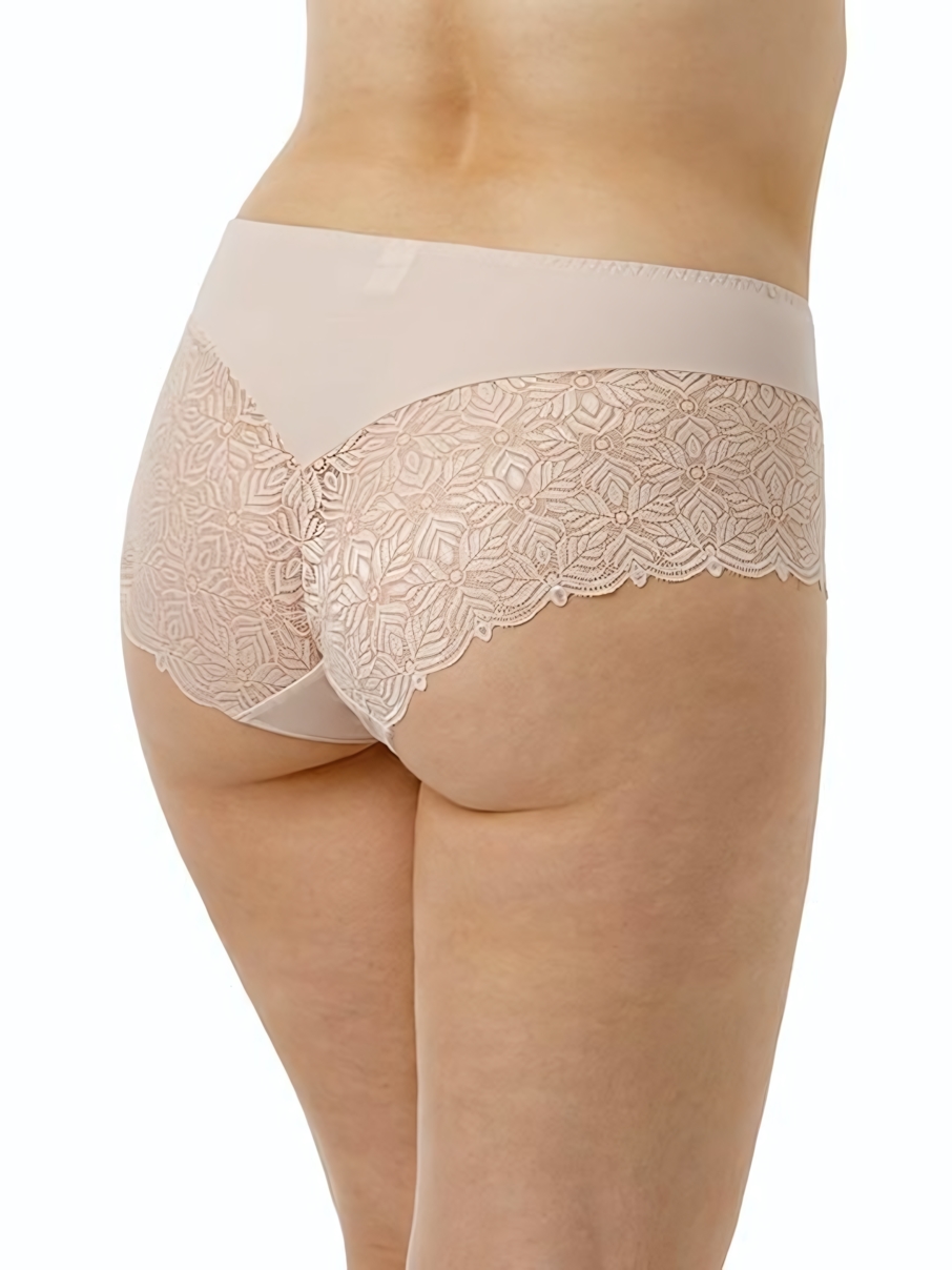 Трусики-слипы с высокой посадкой, размер 52, пудровый, комфортное кружево