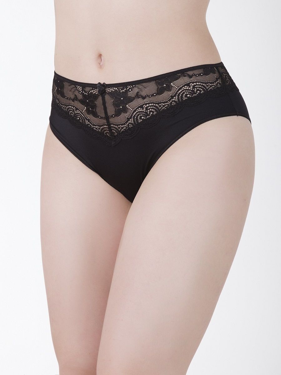 Трусики-слипы черные с кружевом, размер 38/EU, комфортная посадка