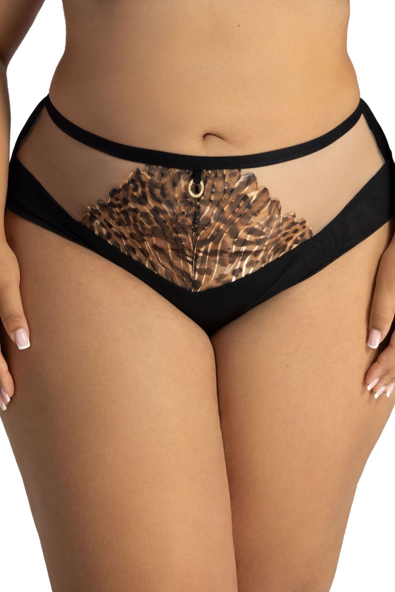 Трусики-слипы 'Liana' черные, размер XXXL, с хищным принтом и вышивкой