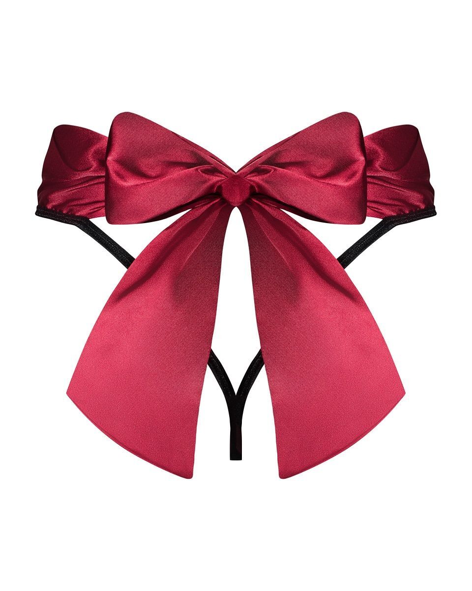Трусики-стринги Tienesy с бантом, черные/малиновые, L-XL, сетка и атлас