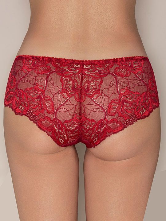 Трусики-бразилиана «Allure»: кружевные вставки, размер 42/48, красный с бежевым, дышащий материал