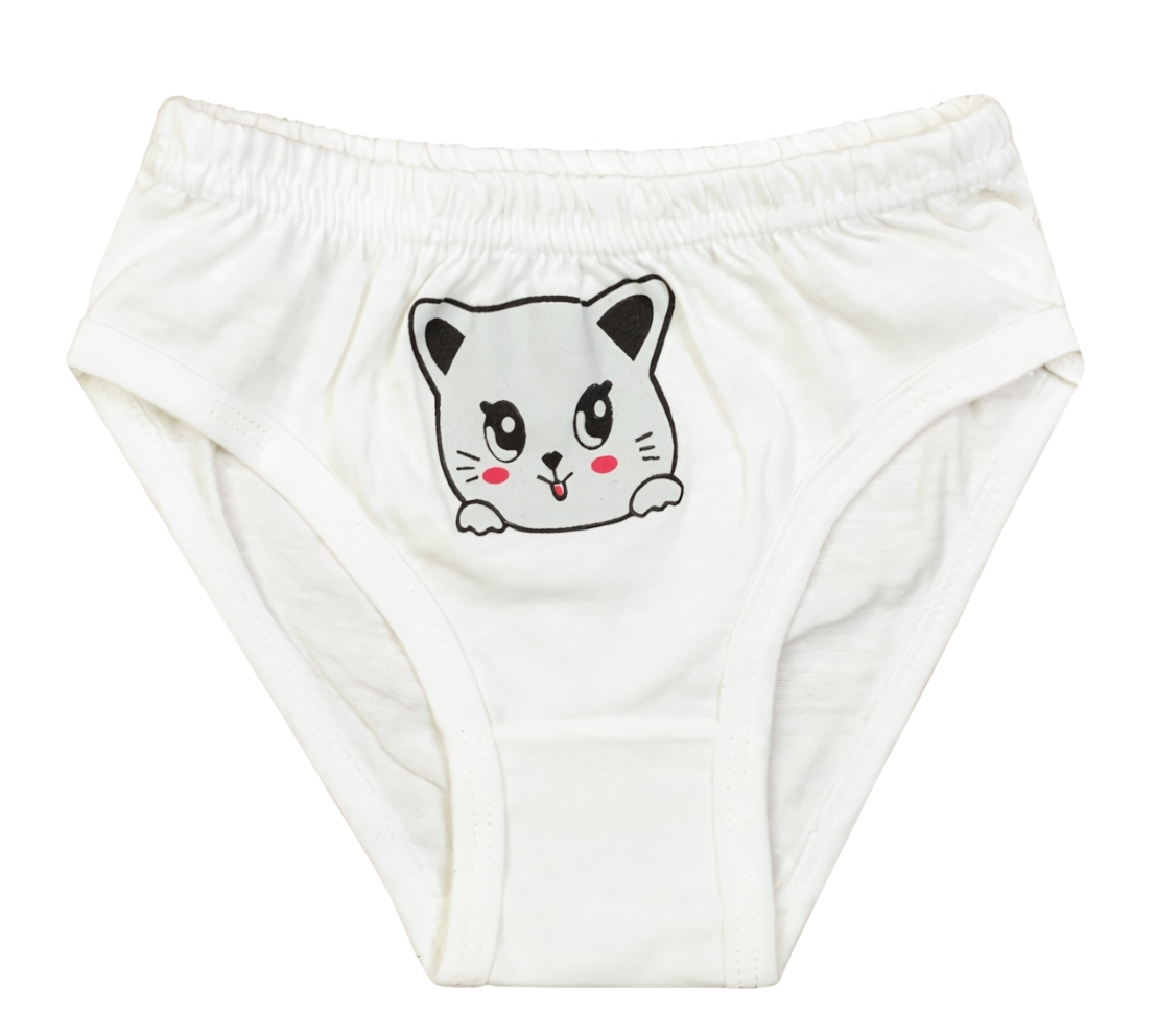 Мягкие и комфортные трусы для девочек, размер 110 см, выполненные из натурального хлопка экру цвета. На передней части размещен очаровательный рисунок кошки с большими глазами и розовыми щечками, который придает изделию игривый и дружелюбный вид. Такой дизайн поднимет настроение ребенку и сделает повседневную носку более приятной.