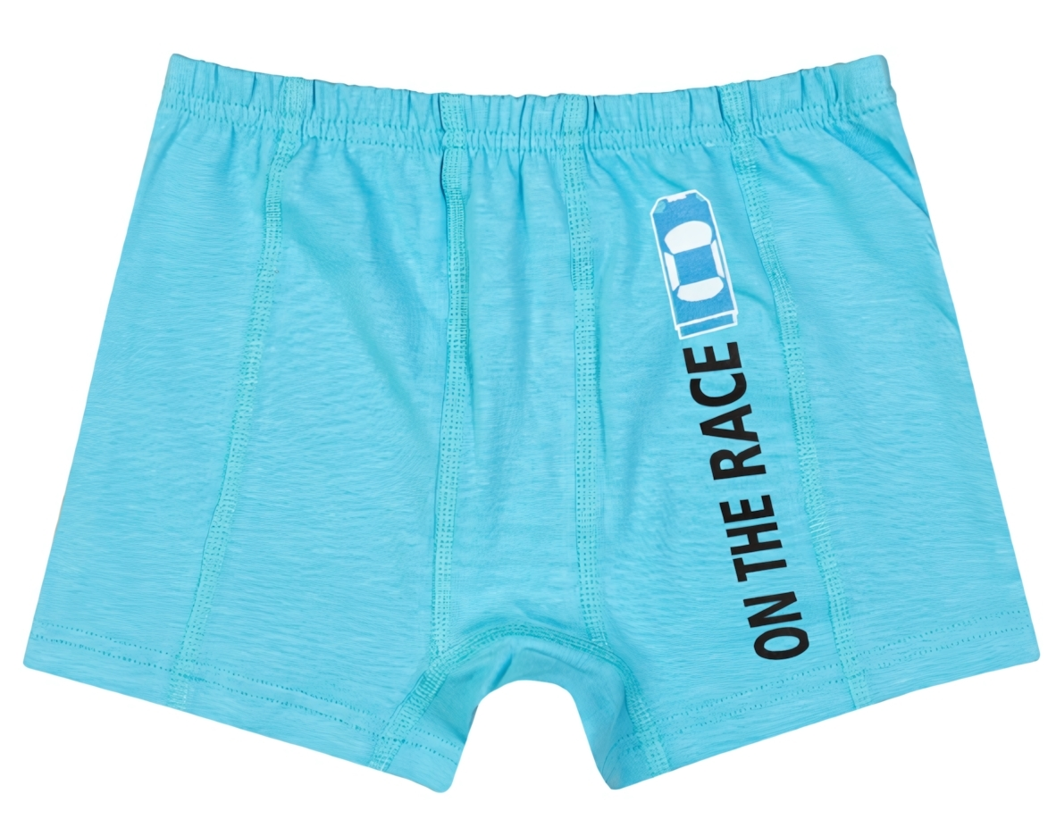 Эти мягкие и удобные трусы-боксеры созданы для комфорта вашего ребёнка каждый день. Лёгкая трикотажная ткань с оптимальным сочетанием 92% хлопка и 8% лайкры обеспечивает приятные тактильные ощущения, хорошо пропускает воздух и сохраняет форму, не растягиваясь со временем. Голубой цвет и яркий принт с изображением гоночного автомобиля и надписью «ON THE RACE» придают изделию стильный спортивный характер, который понравится активным детям.