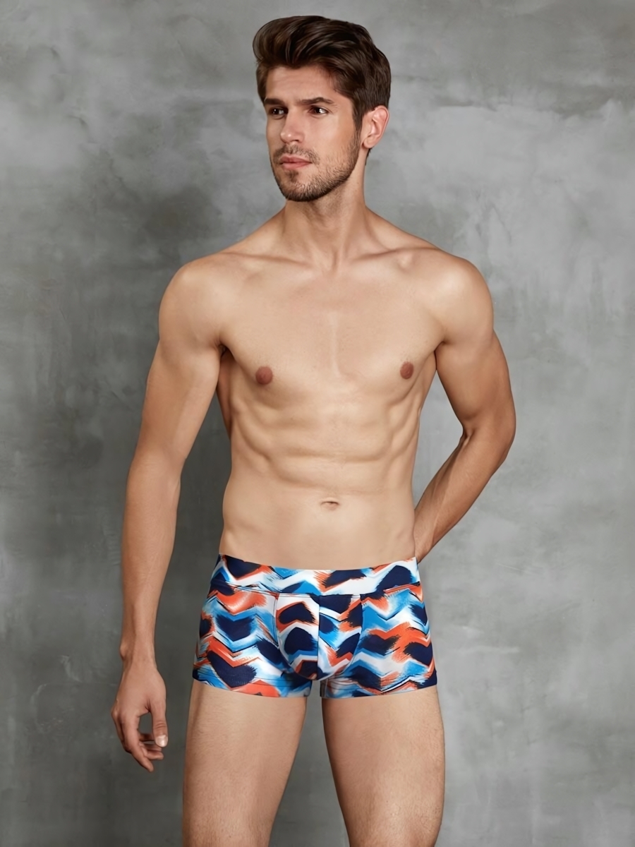 Мужские трусы-хипсы с уникальным принтом сочетают удобство посадки и яркий дизайн. Эластичный материал с оптимальным составом (45% хлопок, 45% модал, 10% эластан) обеспечивает идеальную посадку без сдавливания.