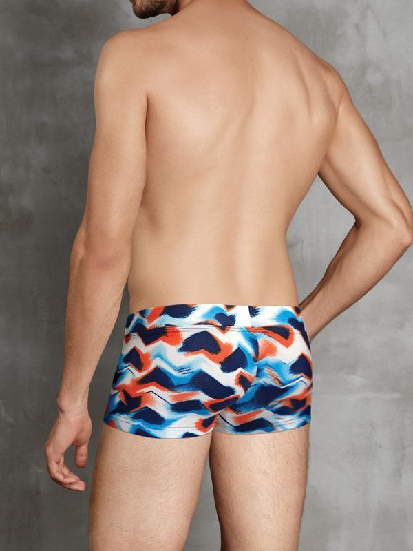 Модель с заниженной посадкой идеальна для повседневной носки под любую одежду. Абстрактный принт в морской гамме скрывает повседневные загрязнения, сохраняя эстетичный вид. Подходит для спортивных нагрузок благодаря четырехсторонней растяжимости ткани.