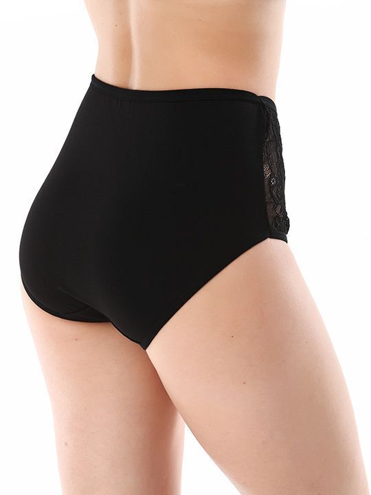 Трусы-макси хлопковые черные, размер XXXL, с кружевной отделкой