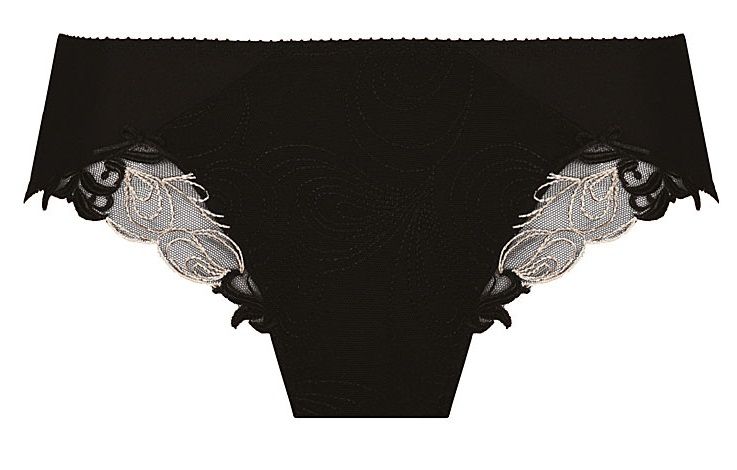 Модель украшена вышитыми вставками по бокам, которые добавляют легкую прозрачность и визуально делают фигуру стройнее. Флористический мотив и аккуратные бантики создают гармоничный акцент, сохраняя баланс между чувственностью и повседневной практичностью. Передняя часть дополнена подкладкой из непрозрачного трикотажа, что делает модель комфортной для ежедневного ношения.