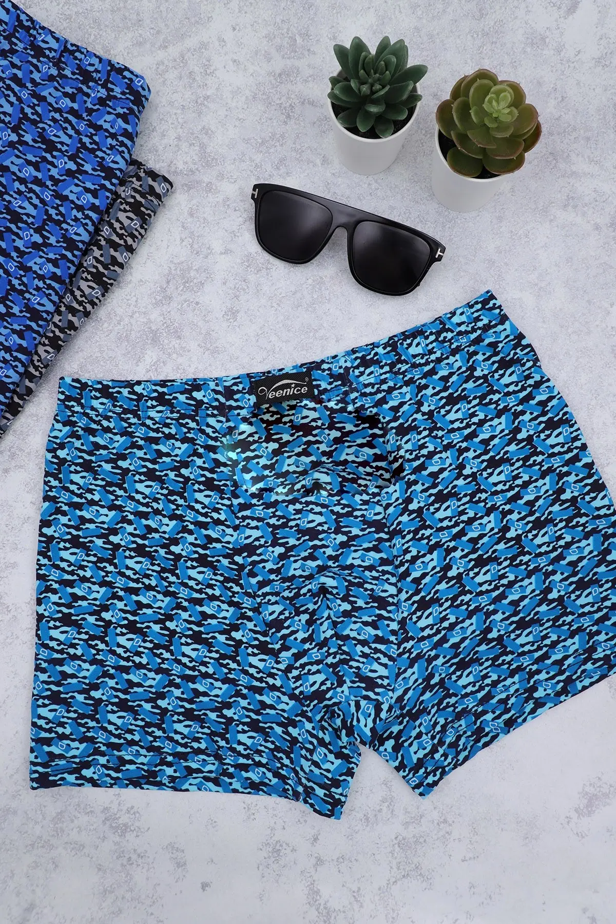 Трусы-шорты мужские «Veenice» с камуфляжным принтом, эластичный пояс, сине-голубой, черный