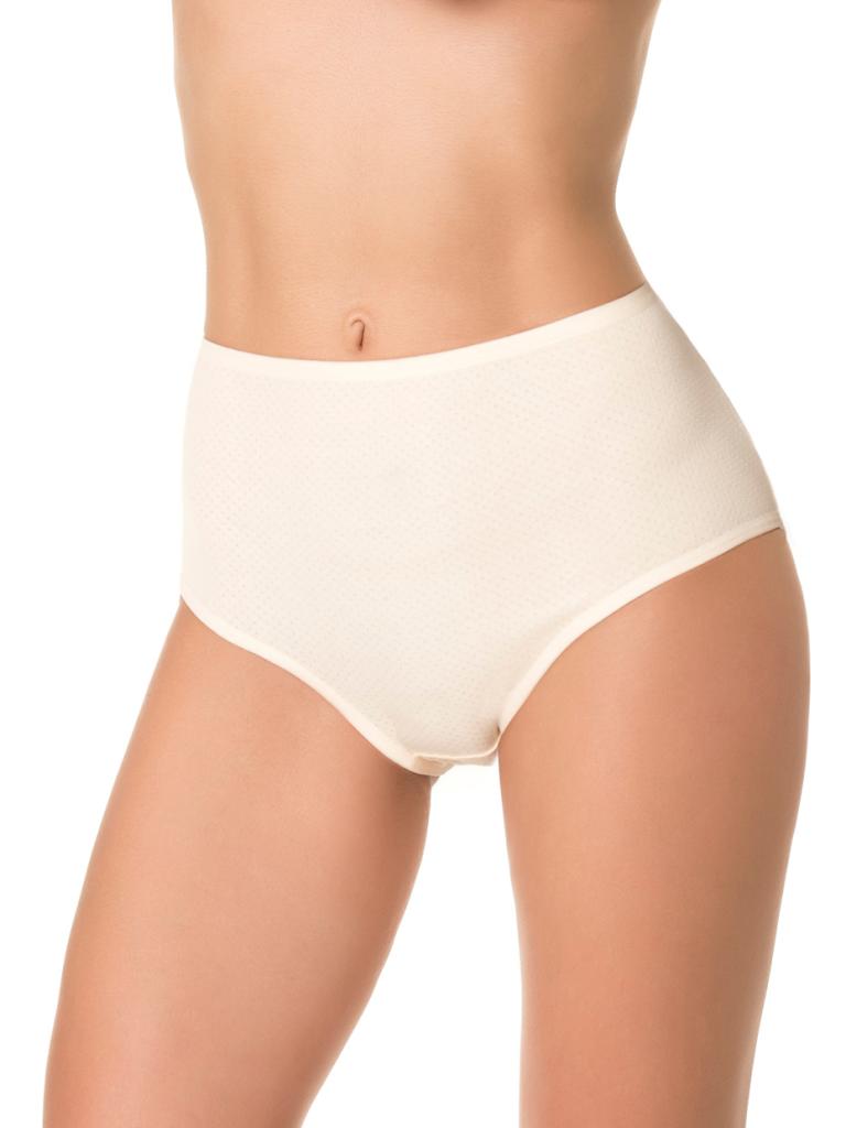 Трусики высокие Dentelle, хлопок 95% с перфорацией, размер XL, молочный, эластичные