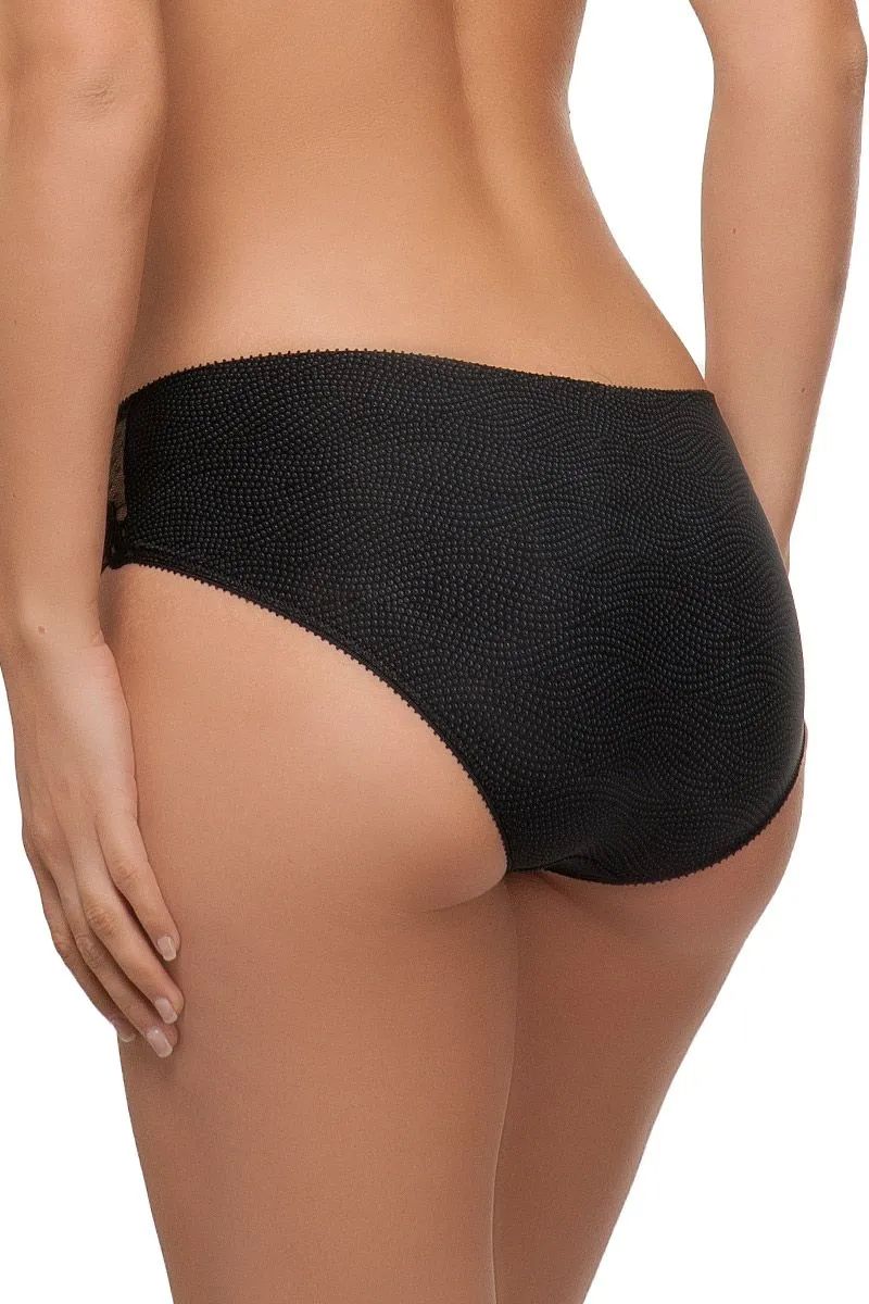 Прямой вырез по талии и формат шорт обеспечивают комфортную посадку без излишнего давления. Задняя часть с полным покрытием дарит уверенность и делает модель подходящей как для повседневной носки, так и для особых случаев. Эластичный трикотаж мягко повторяет контуры тела и не сковывает движений.
