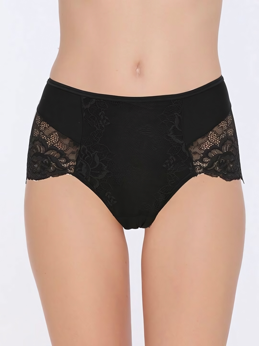 Трусы-слип 'Greta' черные, высокая талия, XL, комфортное кружево