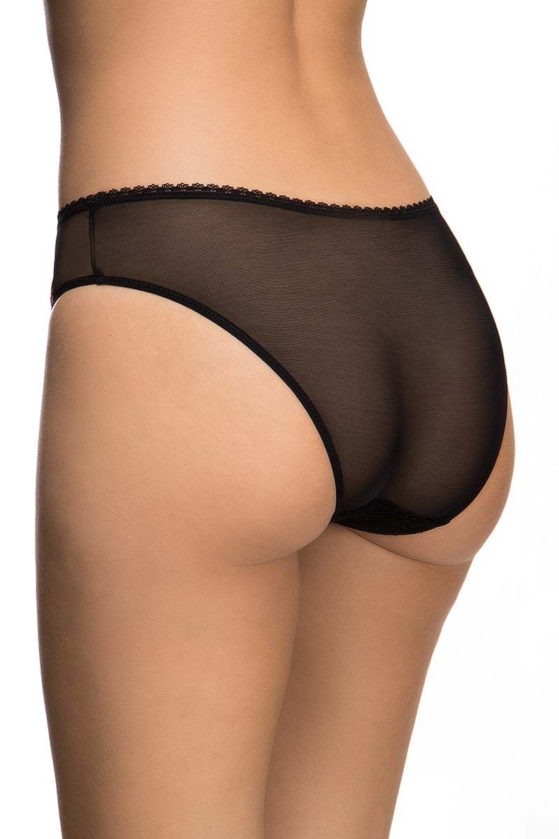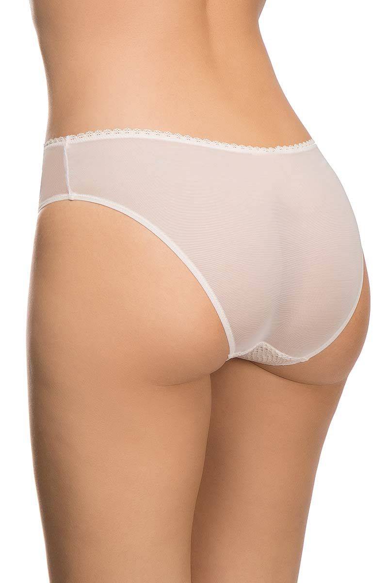 Передняя часть выполнена из плотного материала с рельефной текстурой, который обеспечивает комфорт и аккуратный внешний вид под одеждой. Полупрозрачные боковые и задние вставки из сетки визуально облегчают силуэт и делают модель особенно привлекательной. Тонкая эластичная окантовка мягко прилегает к телу, не создавая лишнего давления.