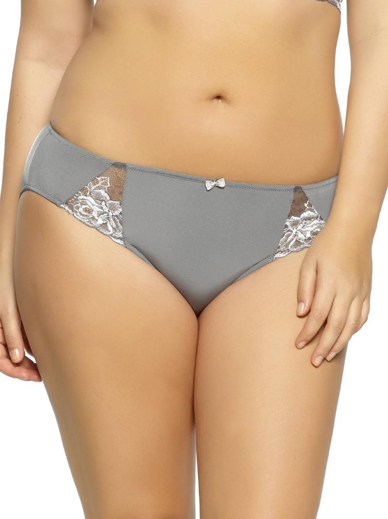 Модель сочетает в себе лаконичный силуэт слипов и деликатные декоративные элементы. На передней части расположены треугольные вставки из полупрозрачного кружева с цветочным узором, которые добавляют образу лёгкую игривость и сексуальность. Небольшой бантик по центру линии талии завершает романтичный образ. Основная часть выполнена из гладкой, однотонной микрофибры без рисунка, что делает эти трусики универсальной основой под любую одежду.