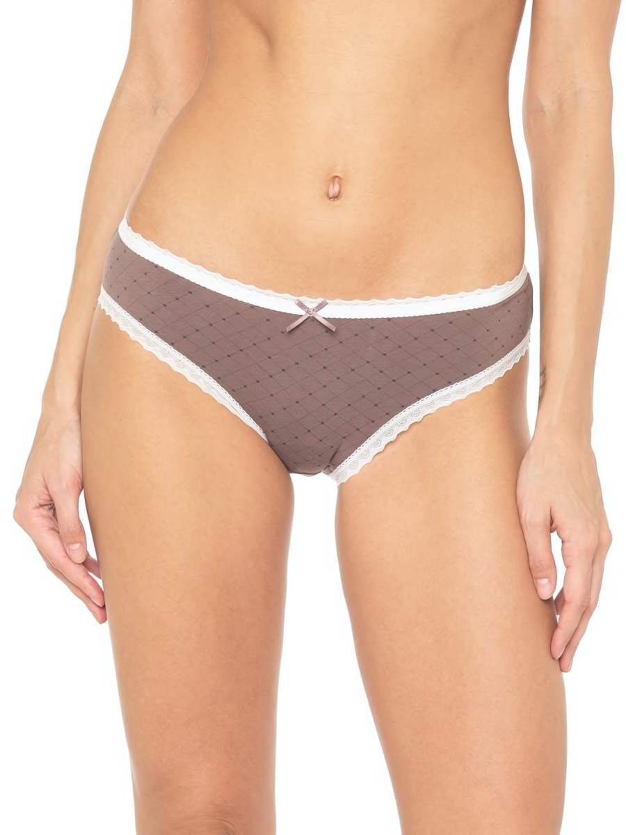 Трусы-слипы Amoret с геометрическим принтом, кофейный, размер S, хлопок 95%, контрастное кружево и бантик