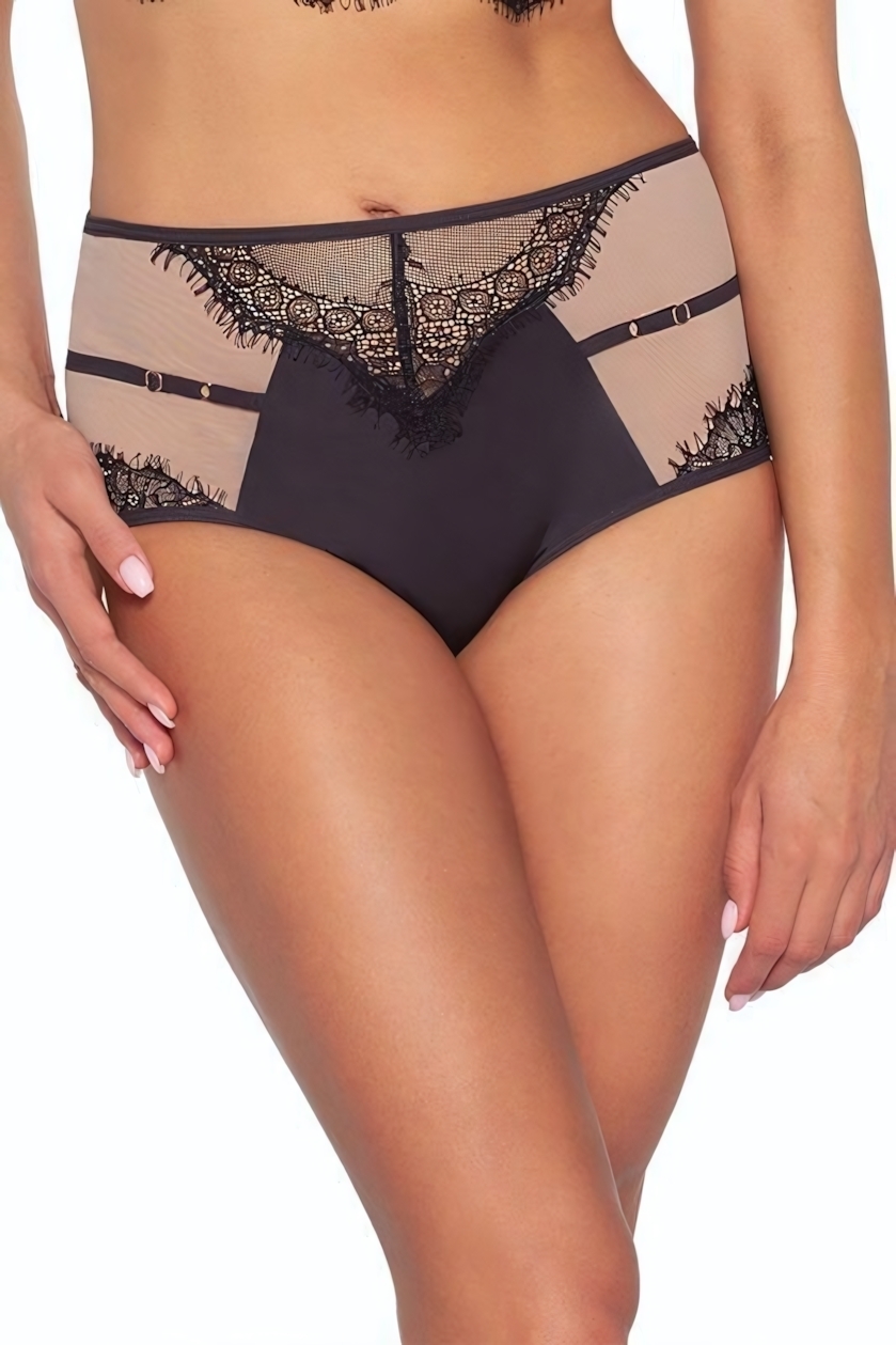 Трусы-слипы с высокой талией, размер XL, цвет коричневый, кружево и сетка