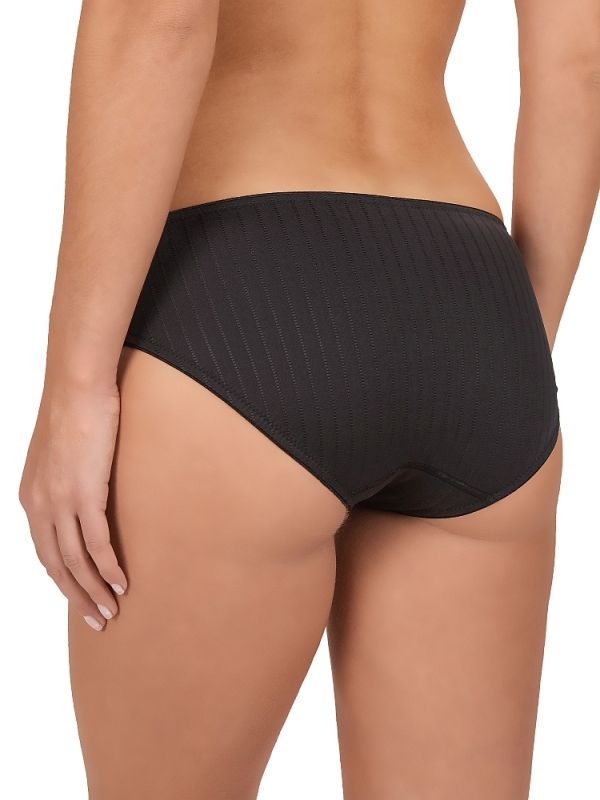 Классическая форма слипов со средней посадкой обеспечивает полное покрытие и комфортную фиксацию без излишнего давления. Эластичная тесьма по линии пояса и вырезам для ног аккуратно удерживает изделие, не впиваясь в кожу. Фактурный материал в мелкий вертикальный рубчик визуально вытягивает силуэт и добавляет изделию изысканности.