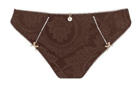 Передняя часть украшена декоративными вставками и миниатюрной пуговицей из натурального перламутра, что придает модели утончённый акцент. Задняя часть дополнена кружевной вставкой «шантильи» с изящным узором. Края обработаны плоским швом, благодаря чему бельё практически не ощущается на коже и не выделяется под облегающей одеждой.