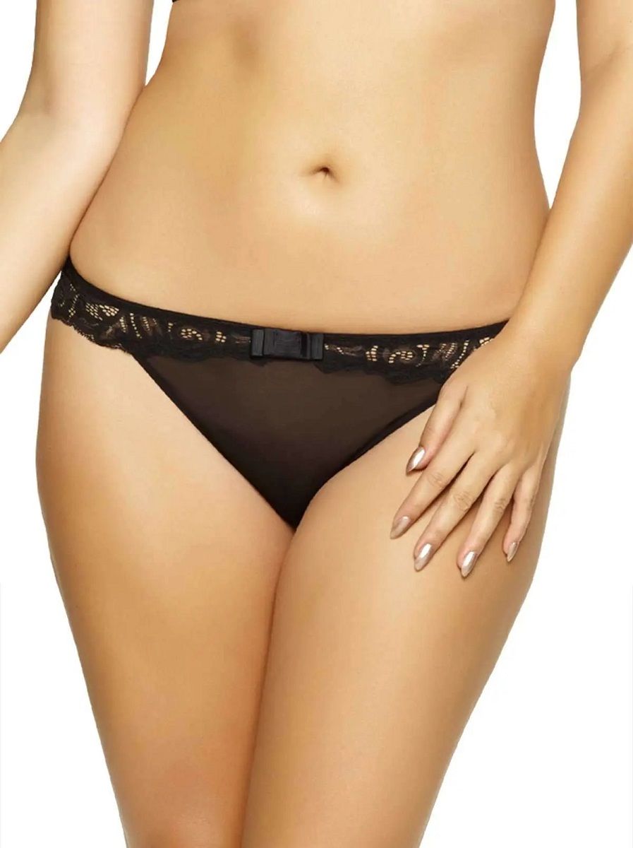 Фронтальная панель выполнена из эластичной сетчатой ткани, растягивающейся в 4 направлениях, что обеспечивает плотное, но деликатное прилегание. Широкий кружевной пояс с цветочным орнаментом и фестончатым краем мягко ложится по талии, не создавая лишнего давления. Тонкая плоская резинка по линии талии и бедер делает посадку аккуратной и практически незаметной под одеждой.